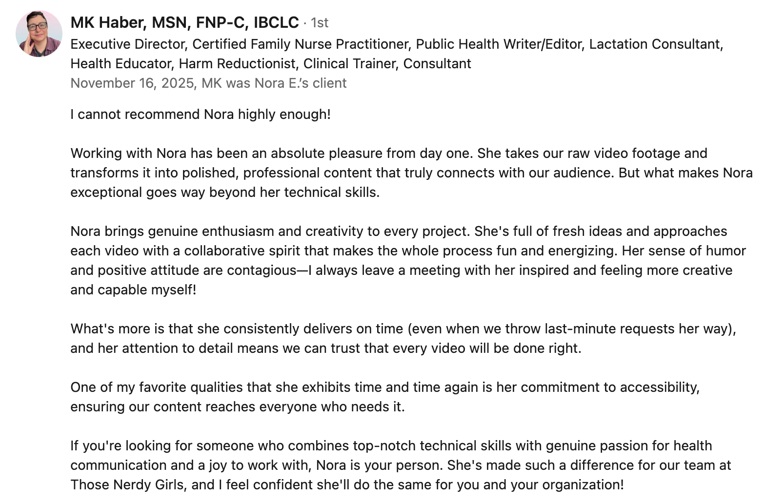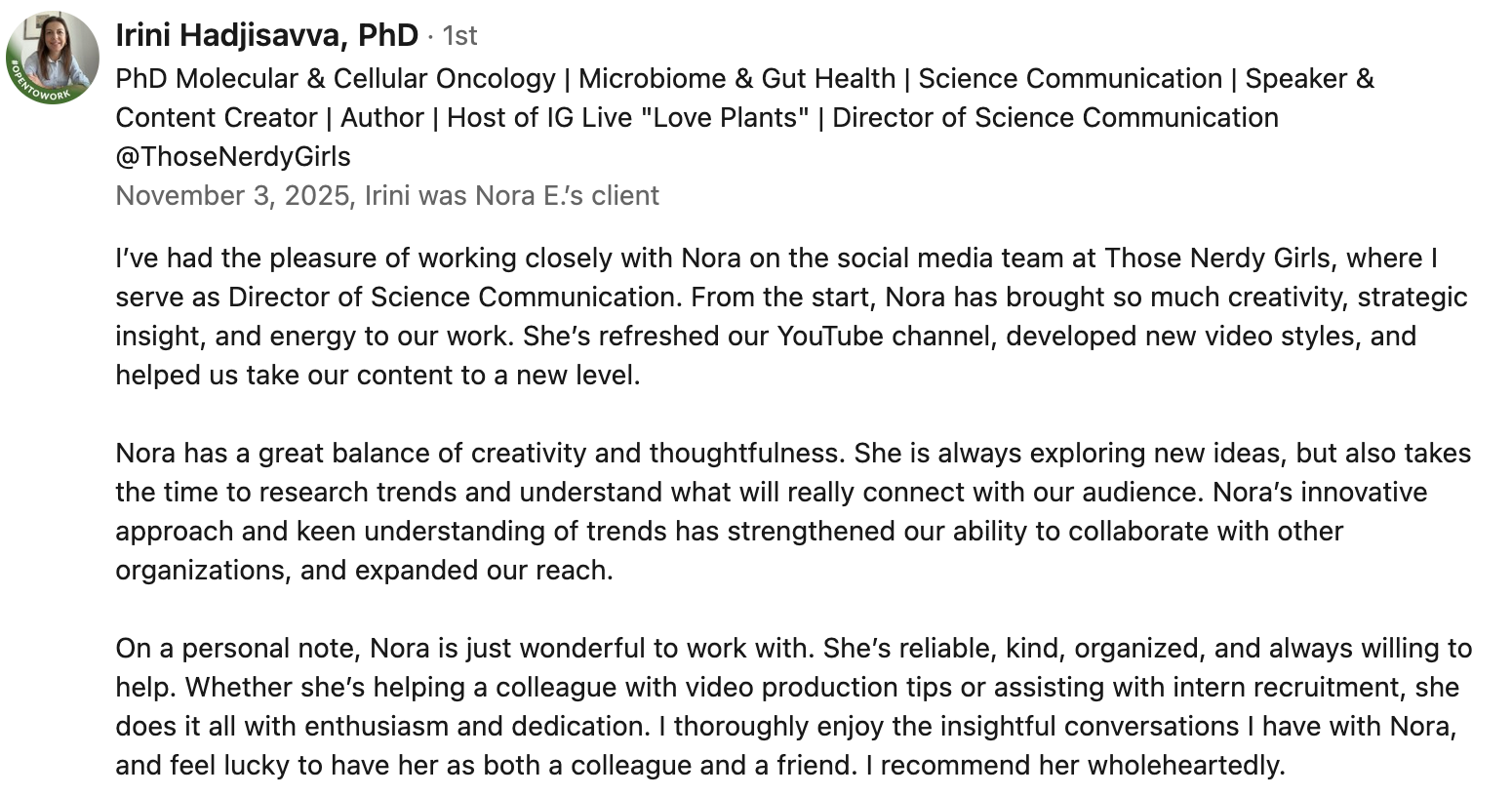 By optimizing their existing channel to its full potential, Nora helped her client use the power of YouTube to actively support their mission of empowering people to better navigate science and health information.